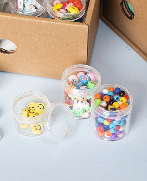 Förvara pärlorna i små, praktiska behållare med lock.