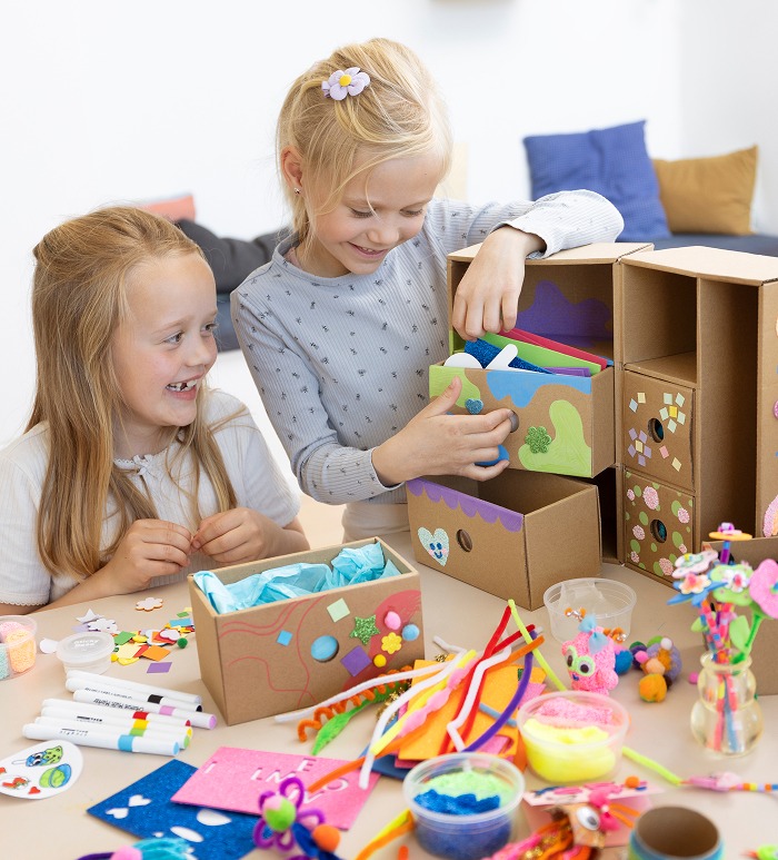 När lådorna i pysselstationen börjar bli tomma kan ni enkelt köpa mer tillbehör och fylla på – antingen med mer av samma material eller med nya, roliga saker som ni vill prova på.